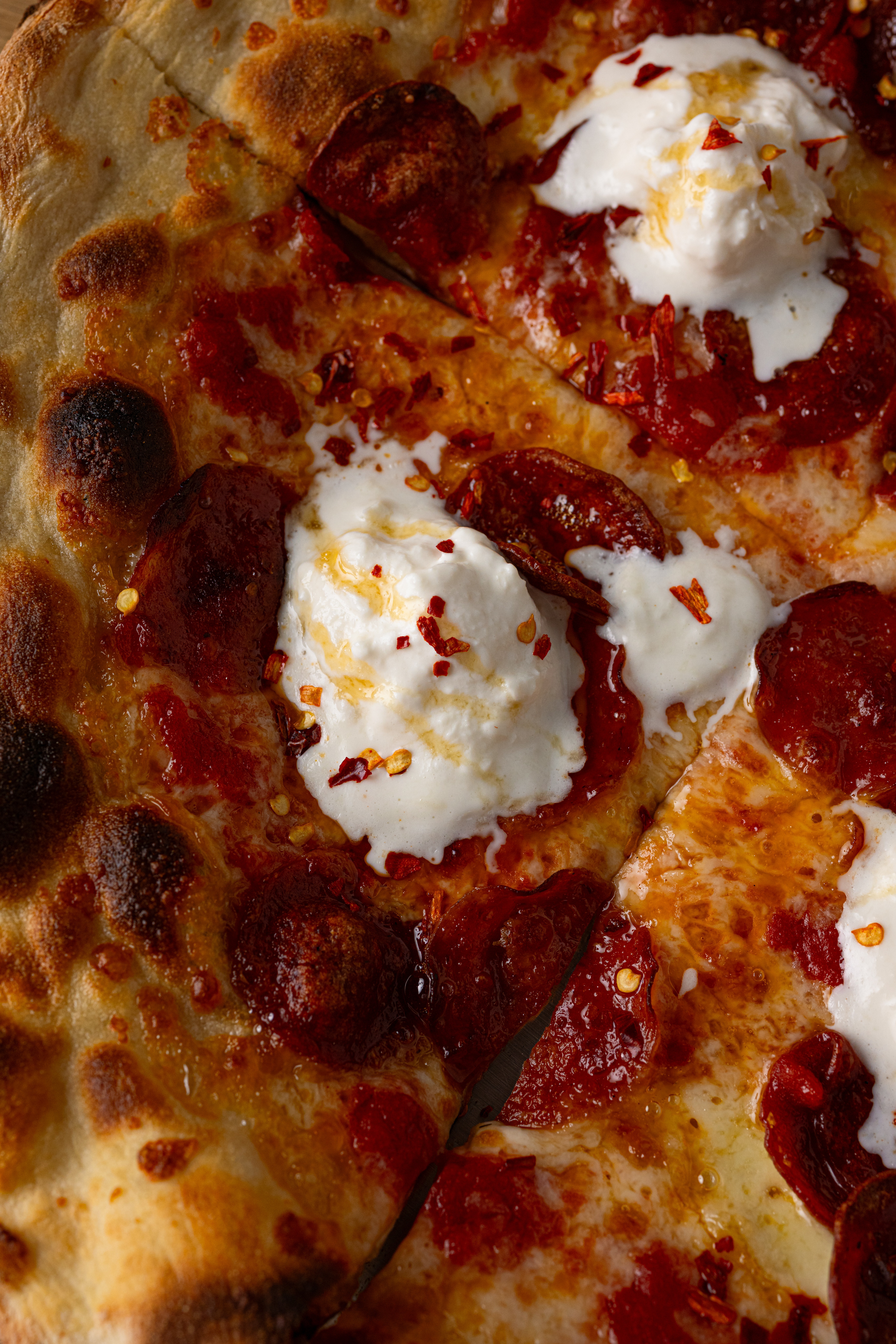 Each day, dough is lovingly handmade for a small group of diners. We open for a four-hour window, serving just 18 seats, fostering intimacy, conversation, and community. No delivery—just sharing food, warmth, and craft under one roof.